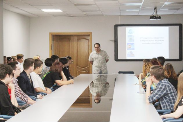 11 июля в Воронежском институте высоких технологий состоялась встреча абитуриентов и их родителей с руководителем IT–направлений, кандидатом технических наук, доцентом Ю. П. Преображенским и проректором по развитию, заместителем председателя приемной комиссии К. Н. Бросовой.