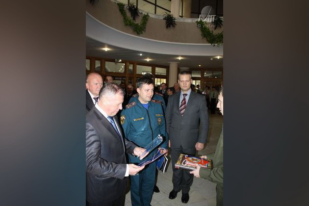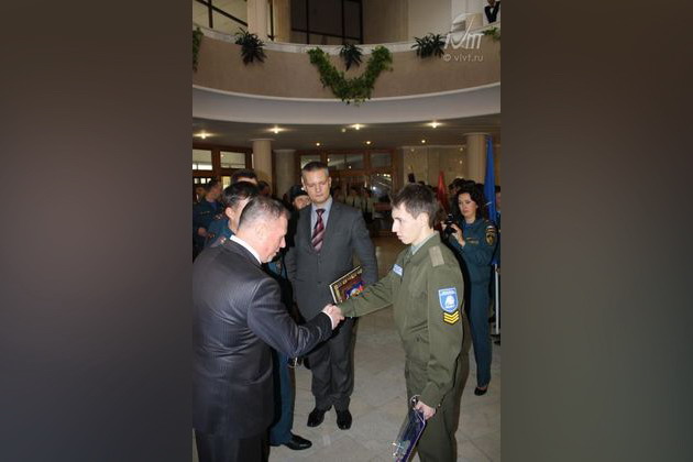 Александр Петрович поздравил участников, посетил выставку пожарной техники и наградил сотрудников учреждений системы МЧС. Студенты направления «Техносферная безопасность» Воронежского института высоких технологий приняли непосредственное участие в программе этого дня, побывали на выставке пожарной техники, познакомились с новшествами в организации пожарной безопасности, в торжественной обстановке вручили вымпел ВИВТ направления «Техносферная безопасность» Президенту Федерации пожарно-прикладного спорта России А.В. Чуприяну, который в знак благодарности подарил студентам ВИВТ книгу «История государства Российского» Николая Михайловича Карамзина.