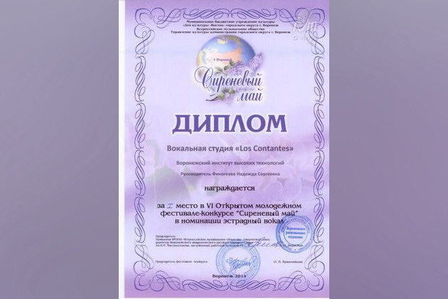 Поздравляем творческие коллективы студентов ВИВТ с победой в молодежном фестивале-конкурсе "Сиреневый май"