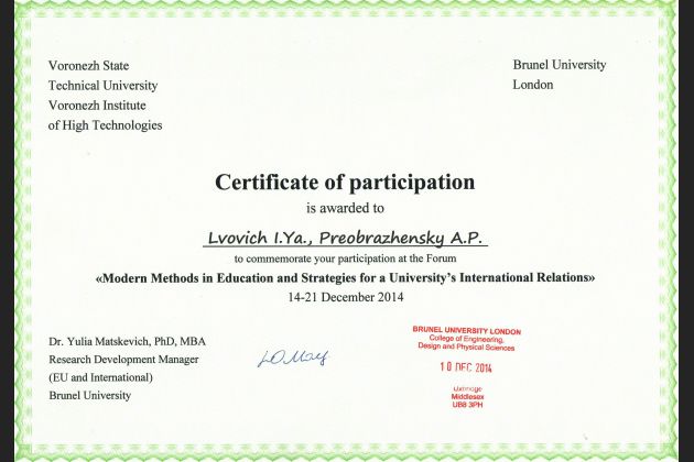 Благодарственные письма, грамоты и сертификаты на имя ректора и коллектива ВИВТ.