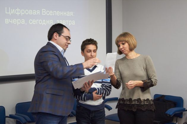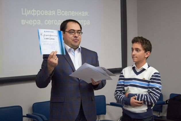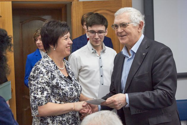 Гран-При получил Принев Мечислав (педагог-наставник Старикова Наталия Петровна) учащийся 9 класса МКОУ «Лицей №15» , представивший работу «Метод сегментации зашумленного изображения с плавающим порогом бинаризации» в Номинации «Цифровая вселенная: вчера, сегодня, завтра». Награду вручал заслуженный деятель науки РФ, академик РАЕН, д.т.н., профессор, президент ВИВТ – Я.Е.Львович.