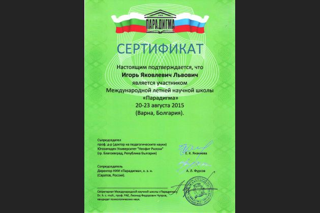 С 20 по 23 августа 2015 г. д.т.н., профессор ВИВТ Львович И.Я. принял участие в работе Международной летней научной школы "Парадигма" в г. Варна, Болгария. В трудах научной школы "Парадигма" опубликована статья Львовича И.Я., Преображенского А. П., и Чопорова О.Н. "Использование "маравьиного" алгоритма при построении моделей объектов, имеющих максимальные средние значения характеристик рассеяния".
